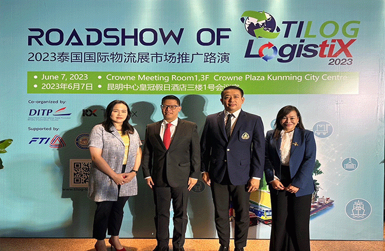 On  June  6-8  , 2023, DITP  in collaboration with  RX Tradex  organized  Roadshow  activities in Kunming, People's Republic of China. to invite logistics entrepreneurs And international traders visit the trade show  TILOG – LogistiX 2023  between  17-19  August  2023  at Hall  98  , BITEC Exhibition and Convention Center.