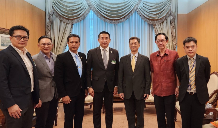 Mr. Nathapol Khantahiran (Deputy Permanent Secretary for Foreign Affairs) confer with Mr. Chaowchai Jiamvijid (Chairman of the Border and Cross Border Trade Subcommittee on Southern China The Thai Chamber of Commerce and the Board of Trade of Thailand)
