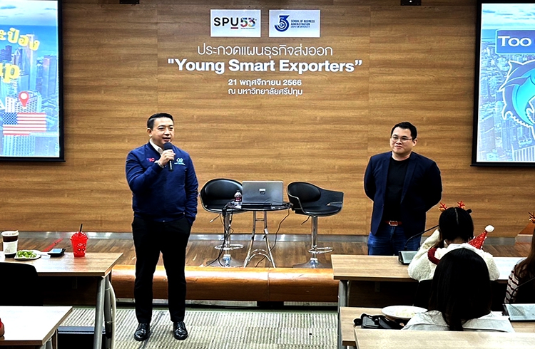 On November 21, 2023, Mr. Chaowchai Jiemvijid, Chairman of the Subcommittee on Border Trade and Cross-Border Trade in Southern China, the Thai Chamber of Commerce and the Thai Chamber of Commerce (TSC trade), was invited to be a lecturer. To lecture and teach students Under the topic YOUNG SMART EXPORTERS, export business plan competition at Sripatum University. Faculty of International Trade